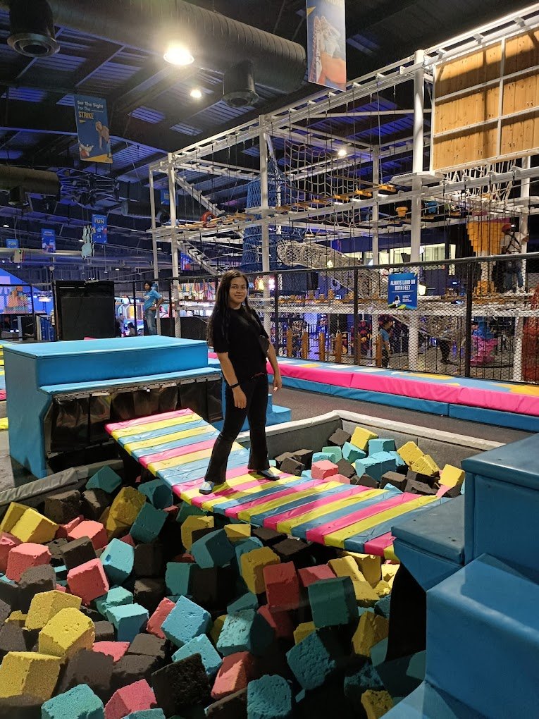Foam PitA giant pit filled with thousands of soft foam cubes for safe landing.